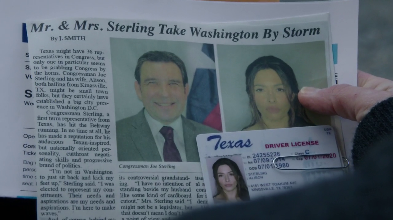 Synecdoche | Alison Sterling | Wife of Congressman Sterling | ||